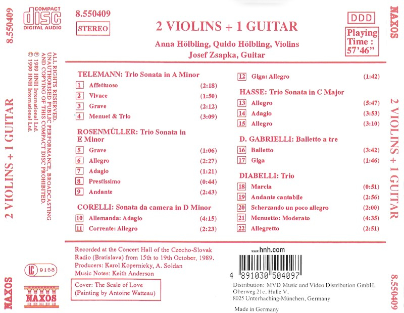 Este álbum contiene varias piezas de los compositores Telemann, Rosenmüller, Corelli, Hasse, Gabrielli y Diabelli.