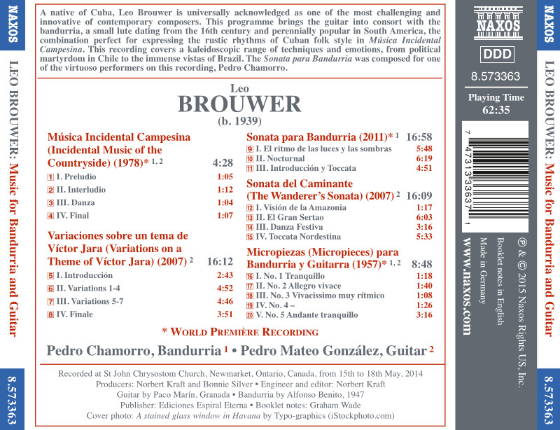 Este álbum contiene varias piezas para bandurria y guitarra del compositor Leo Brouwer.