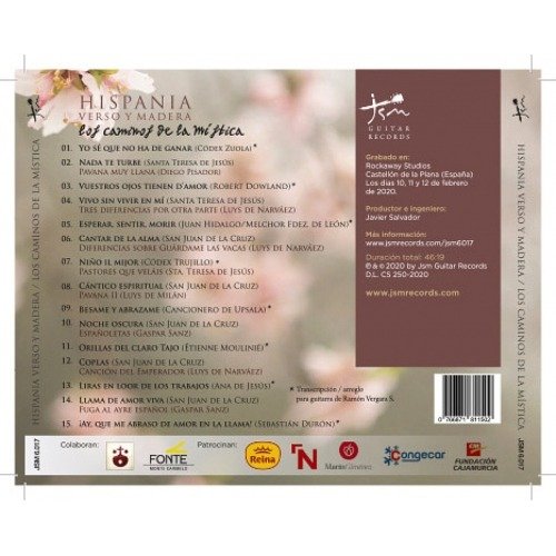 “Los caminos de la mística” es el primer disco del dúo Hispania: verso y madera, que combina poesía de la mística del Siglo de Oro y música antigua. Incluye poemas de Santa Teresa de Jesús y San Juan de la Cruz, fusionada con grandes obras para guitarra barroca y vihuela del Siglo de Oro español, así como canciones del folklore barroco latinoamericano.