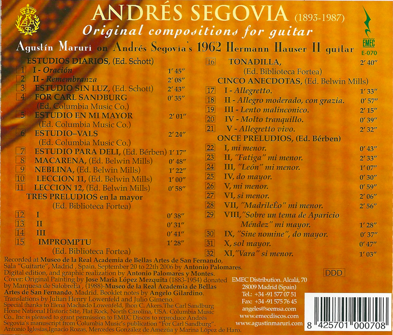Una buena selección de estudios, preludios y piezas de Andrés Segovia.