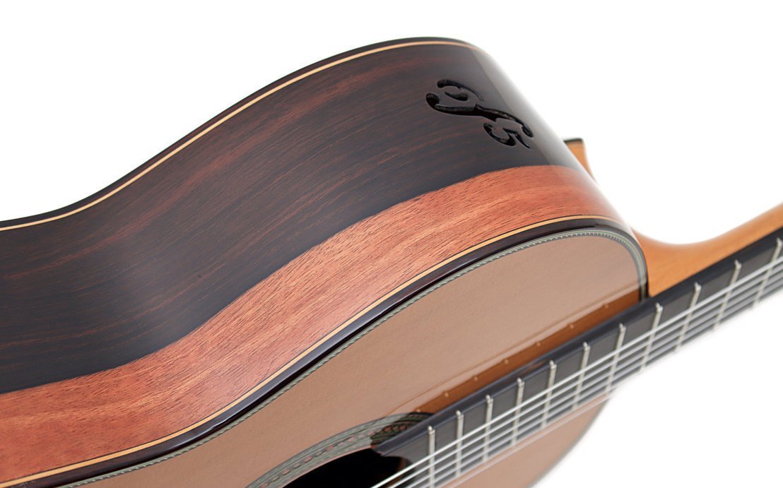 Regarding sound, it offers the power and projection expected from a good double-top guitar, without losing the essence and tonal quality of a good Spanish guitar; it also offers extra sustain and great clarity of sound differentiated by strings.