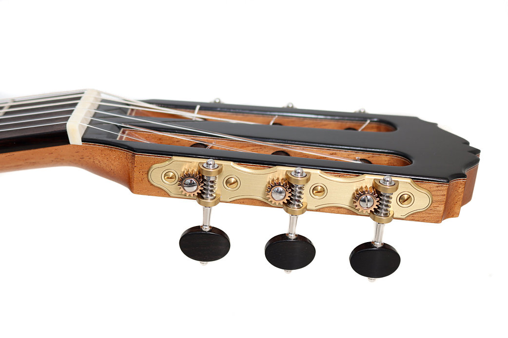 Meticuloso y concienzudo en su trabajo, como buen alemán, le ha llevado años desarrollar y experimentar esta técnica hasta conseguir un trabajo de primerísimo nivel. Sus guitaras de doble tapa en nuestra opinión son una evolución en sonido y prestaciones con respecto a las famosas Dammann.