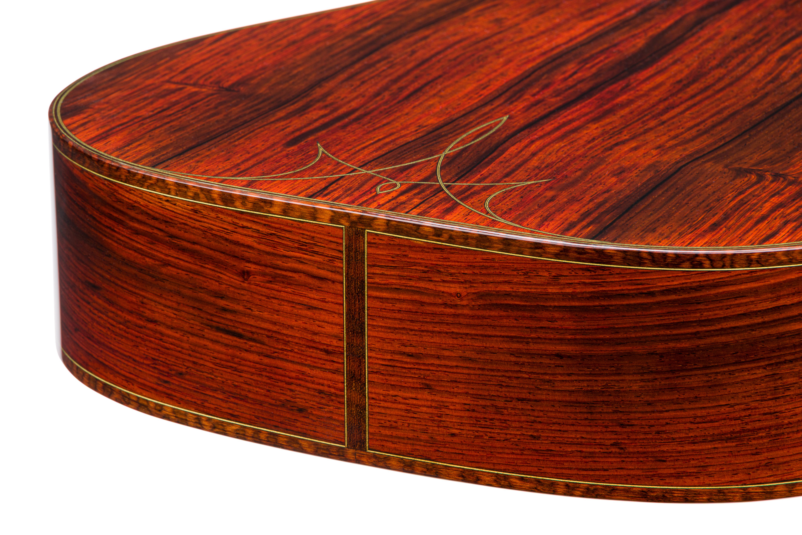 El fileteado de toda la guitarra está también terminado con palosanto de serpiente y abalone multicolor.