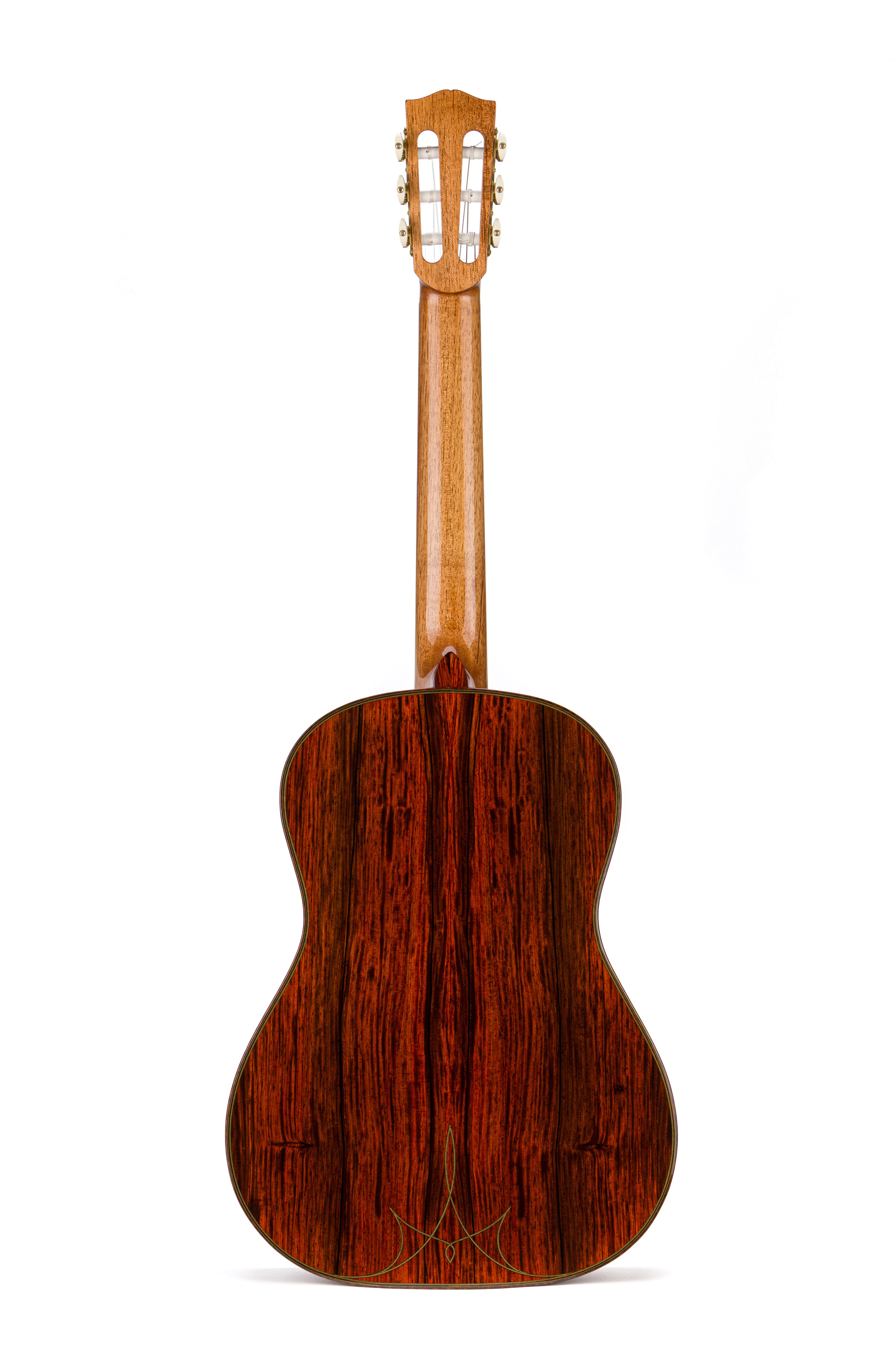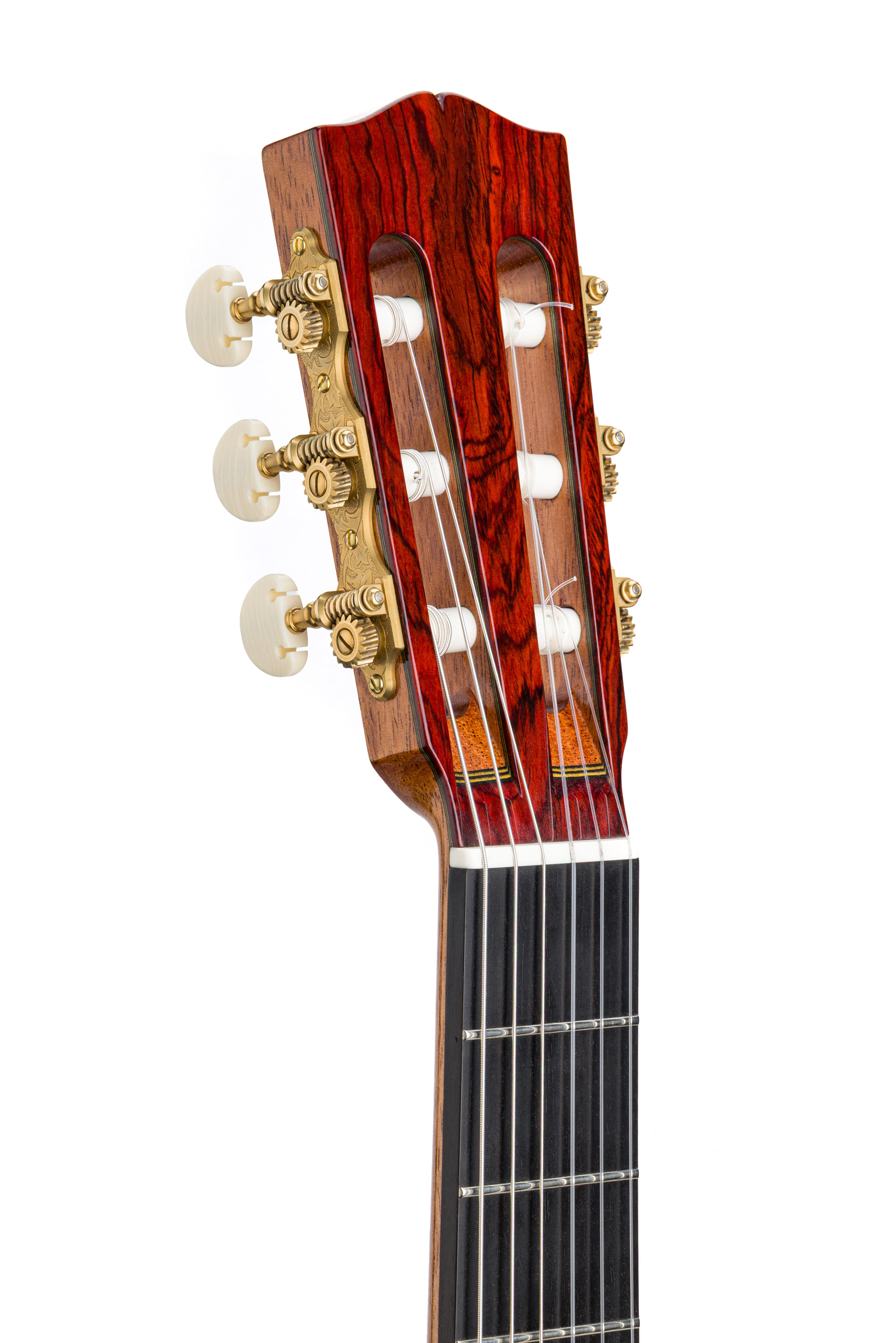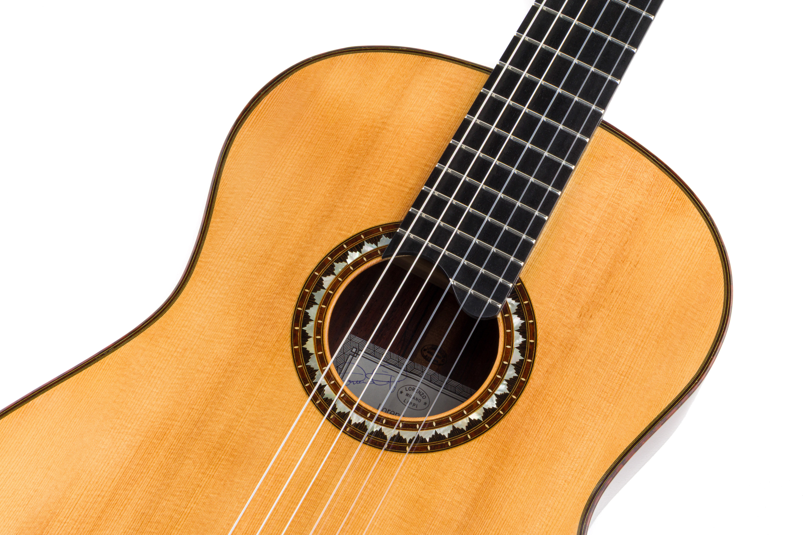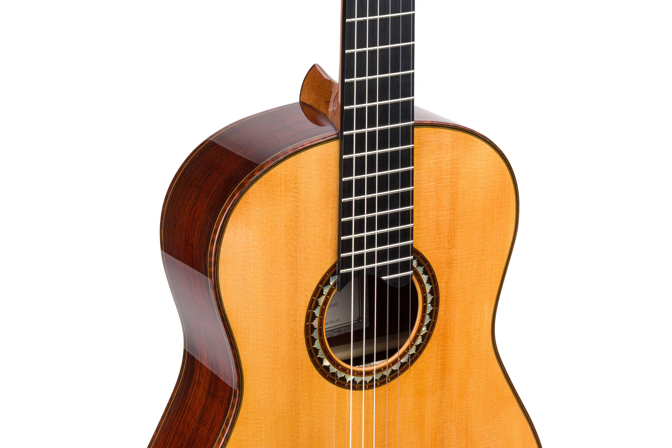 Las formas, el tamaño y la comodidad evocan enseguida las guitarras Hauser, pero hay detalles de construcción del propio maestro que embellecen notablemente este instrumento.
