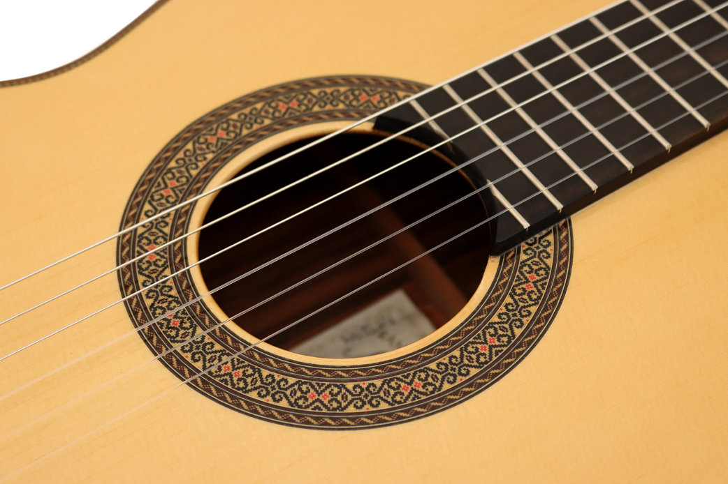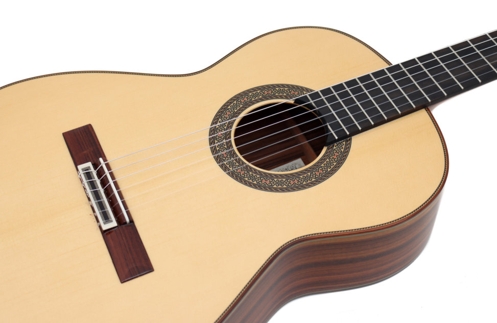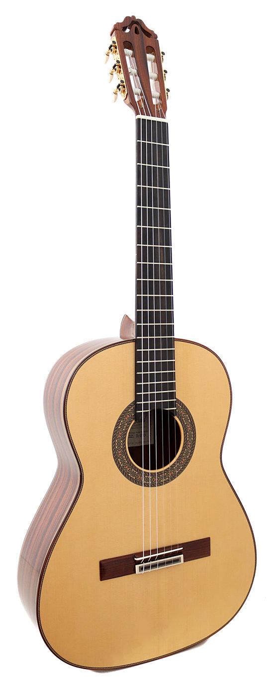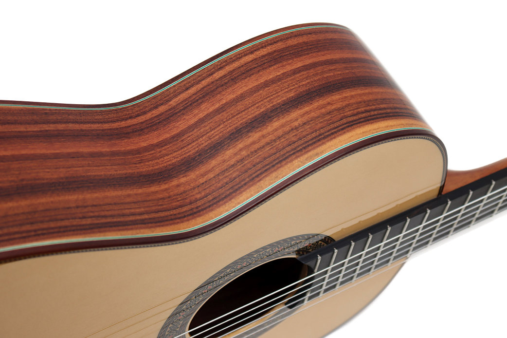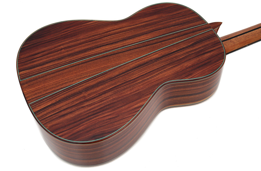 Construida con maderas de Granadillo, que le aporta un característico tono de excepcional belleza. Esta guitarra no requiere de documentos CITES.