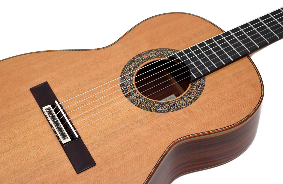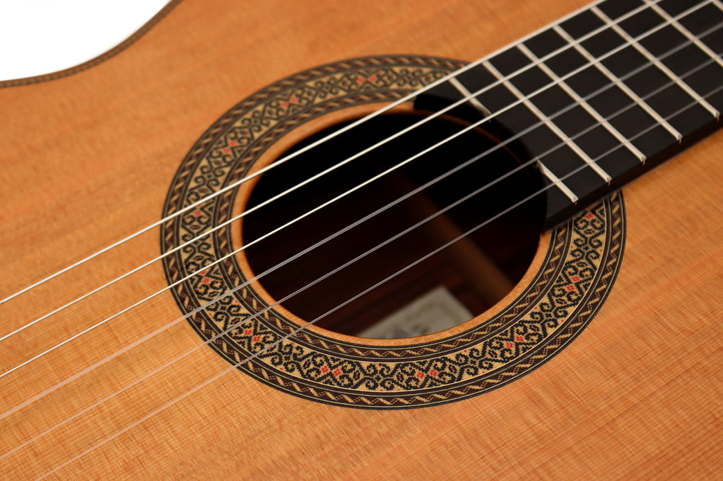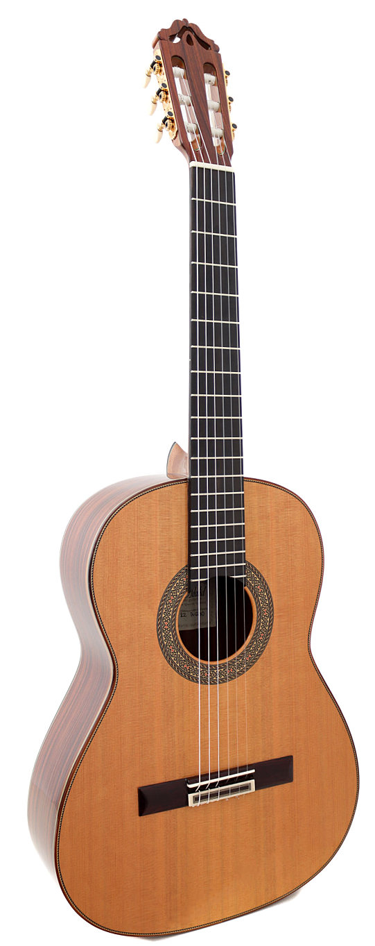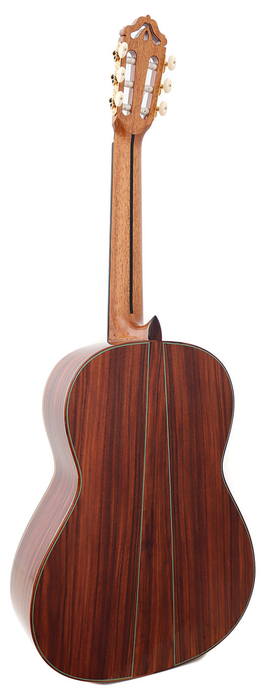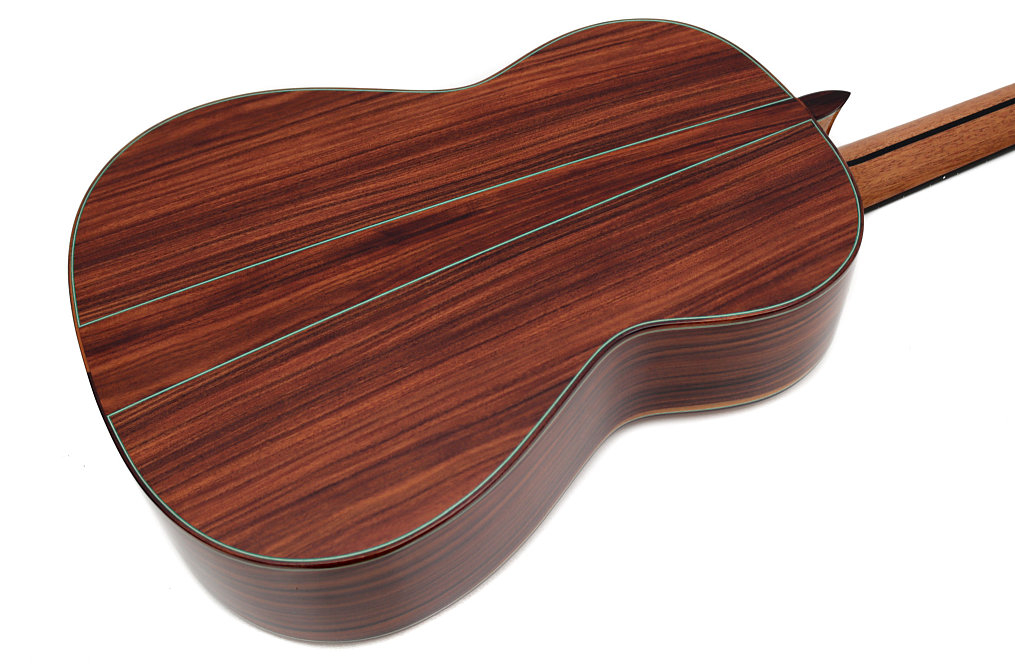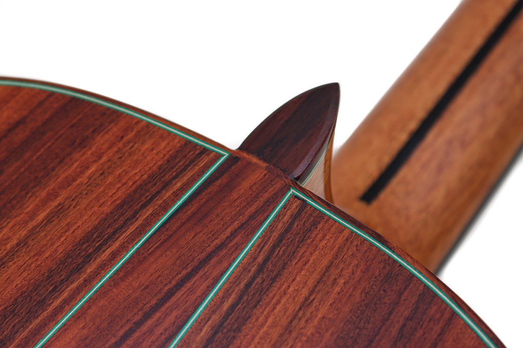Construida con maderas de Granadillo, que le aporta un característico tono de excepcional belleza. Esta guitarra no requiere de documentos CITES.