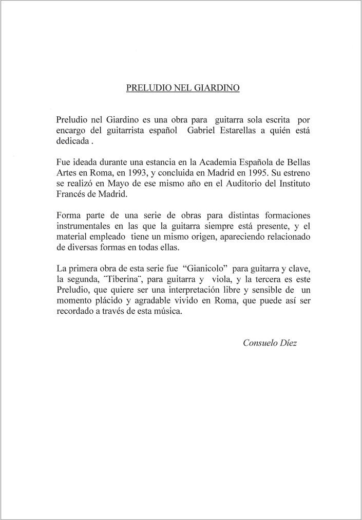 Partitura: Preludio nel Giardino Autora: Consuelo Díez Digitación: Gabriel Estarellas